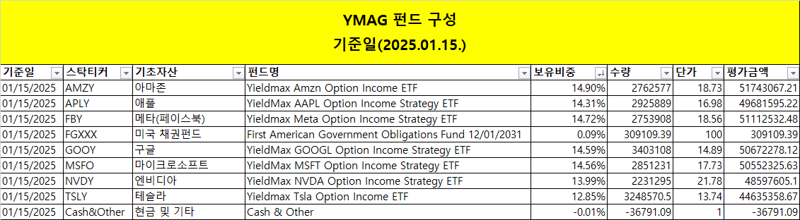 5. YMAX와 YMAG의 펀드 구성