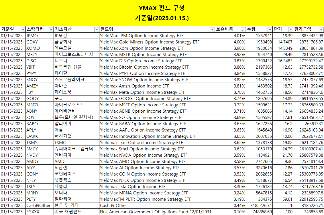 1) YMAX 펀드 구성